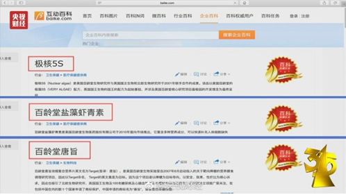 在這里,一些號(hào)稱神奇的產(chǎn)品,光鮮的人物簡(jiǎn)歷,只要花4800元錢就可以開通 “百科詞條認(rèn)領(lǐng)”的服務(wù),然后就可以隨意杜撰并發(fā)布,用虛假的廣告堂而皇之地“圈錢”。