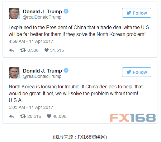 據(jù)彭博報道,周二早些時候,美國總統(tǒng)特朗普推文稱,要是中國不在朝鮮問題上采取行動美國就要“單干”。