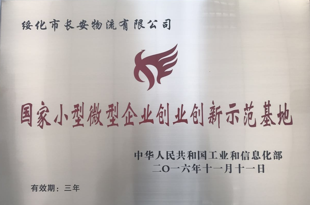 2016年11月,經(jīng)省、市相關(guān)部門(mén)推薦、評(píng)審和公示,集團(tuán)旗下的綏化長(zhǎng)安物流有限公司 被國(guó)家工業(yè)和信息化部評(píng)為“國(guó)家小型微型企業(yè)創(chuàng)業(yè)創(chuàng)新示范基地”。